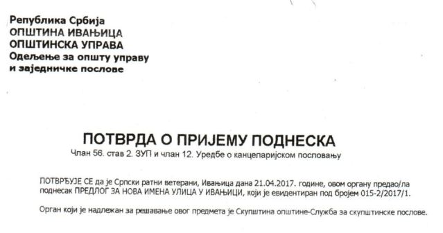 Српски ратни ветерани покренули су том приликом иницијативу Скупштини општине Ивањица да њихови суграђани Драган Танкосић, Слободан Мирковић, Душко Ђоковић и Душко Глигорић, који су изгинули од стране НАТО ЗЛИКОВАЦА, добију појединачно своје улице у том граду.
