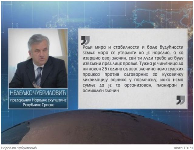 „Тужна је чињеница да ни након 25 година од овог злочина нема судских процеса против одговорних за кукавичку ликвидацију војника у повлачењу, иако нема сумње да је то организован, планиран и осмишљен злочин“, рекао је Чубриловић.