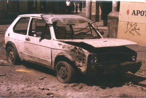 Изглед “голфа” поред кога је наводно експлодирала граната 130 мм на Капији 25.05 1999.год.