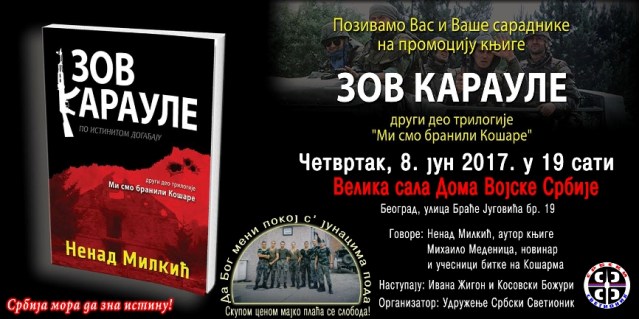 велика нам је част да Вас позовемо на промоцију књиге Ненада Милкића „Зов Карауле“, други део из трилогије „Ми смо бранили Кошаре“.