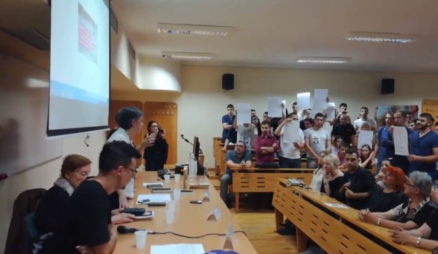 Када су представници ове екстремне организације покушали да заведу ред у сали студенти су запевали песму „Са Косова зора свиће“, а затим напустили у салу у којој је остало свега 15ак људи.