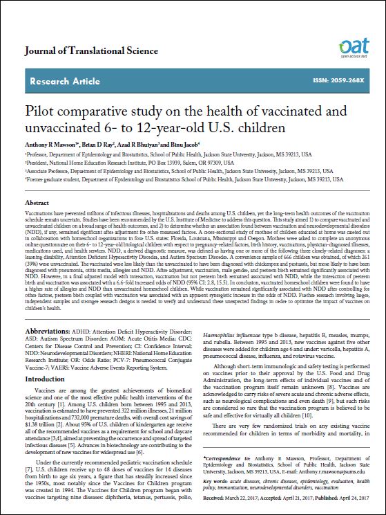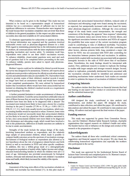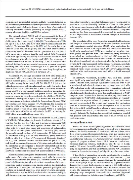 Па, данас Природне Новости имају повезану студију. Прочитао сам је, и да скратимо ствар, најзначајније информације су на странама 7, 8, и 9. Ако неко расправља са вама о вакцинама, (нарочито ако се ради о „интернет троловима“) и каже „Наука каже – вакцине су безбедне“, и стога ви немате образовање и сувише сте глупи да схвате вакцине, ЛИНК ка овој студији позива се на сјајне научнике, и реците им да то врло има смисла, јер сте разумели студију, знате шта „значи рецензија“ и да та „рецензија“ студије чврсто научно доказује да вакцине не само да изазивају аутизам, изазивају и многе друге хроничне болести, од којих су неке наведене у овој СТУДИЈИ: