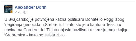 Швajцарски политичар Донатело Пођи (Donatello Poggi) из кантона Тицино осуђен је правоснажно због јавног негирања геноцида у Сребреници, објавили су швајцарски медији.