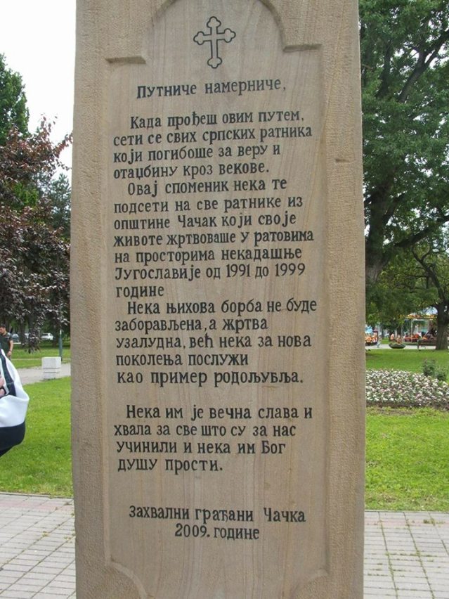 Након окупљања на Градском тргу, ветерани су се упутили до малог парка где су положили венце на споменик који је подигнут настрадалим Чачанима за време НАТО агресије 1999. године.