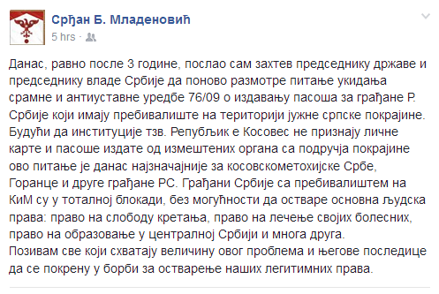 Апелујемо на државу Србију, ако још увек постоји, да нам што пре реши проблем са српским папирима, или ћемо се дићи и куком и мотиком!!!