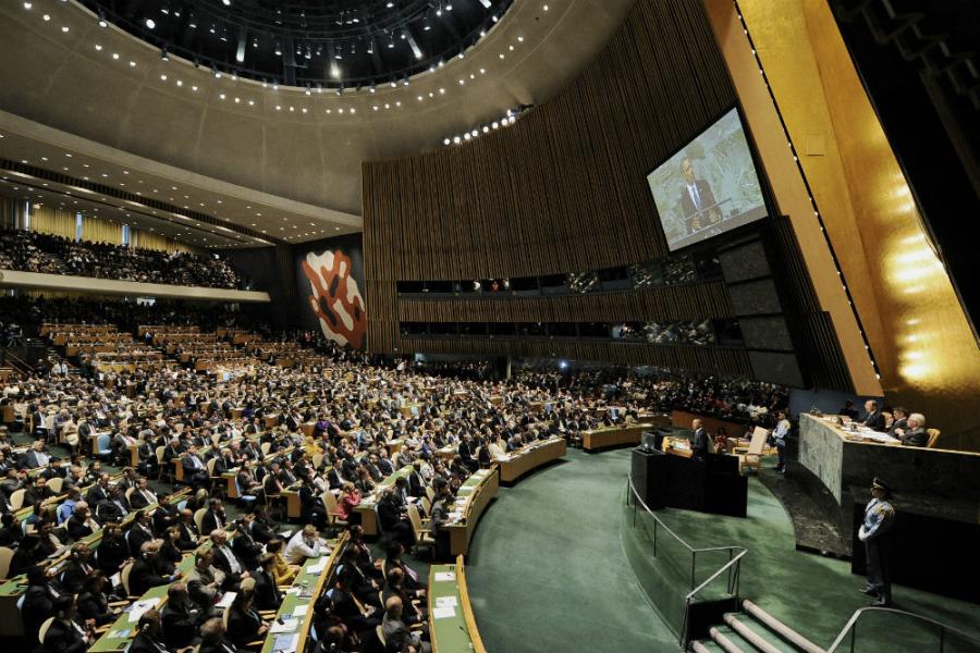 ГЕНЕРАЛНА СКУПШТИНА је састављена од свих чланова ОУН. Овлашћена је да расправља о свим питањима или предметима који су обухваћени Повељом и да о свему томе даје препоруке свим члановима ОУН или Савету безбедности, са изузетком који се спомиње у члану 12 Повеље: „Док Савет безбедности у погледу ма ког спора или ситуације обавља функције које су му додељене Повељом, Генерална скупштина неће моћи давати никакве препоруке у погледу конкретног спора или ситуације, осим ако би то Савет безбедности затражио“.