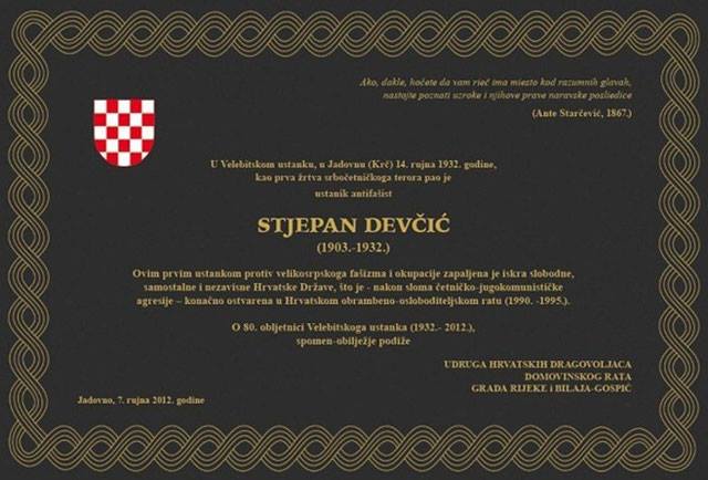 Хрватска споменица усташи Стјепану Девчићу