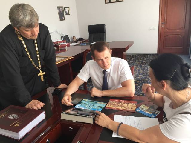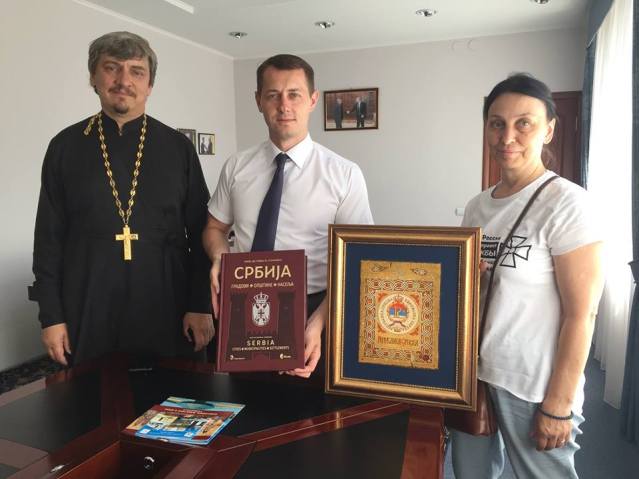 Интерес к приезду сербской команды велик и у Администрации города. Надежда, Антон и благочинный приходов Азовского городского округа протоиерей Александр Мирошниченко встретились с мэром Азова Владимиром Ращупкиным, передали приветствие и памятные подарки от градоначальника Биелины господина Мичо Мичича. Отныне, в городской Администрации Азова, на почётном месте будет висеть Герб города Биелина. Владимир Валерьевич подробно расспросил о результатах поездки в Республику Сербскую, заинтересованный разговор вместо запланированных 15 минут официального визита продолжался больше часа.