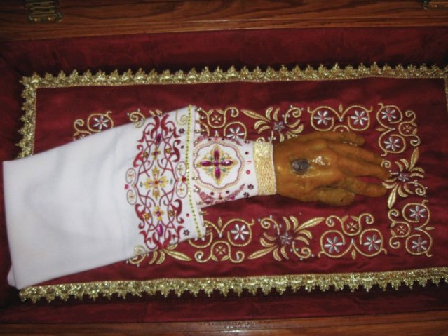 Ковчег и све друге манастирске драгоцености однела је раније комисија под вођством директора загребачког Музеја за умјетност и умјетнички обрт Владимира Ткалчића. Однета је и круна са светитељеве главе, а приликом скидања драгоцености, мошти су оштећене.