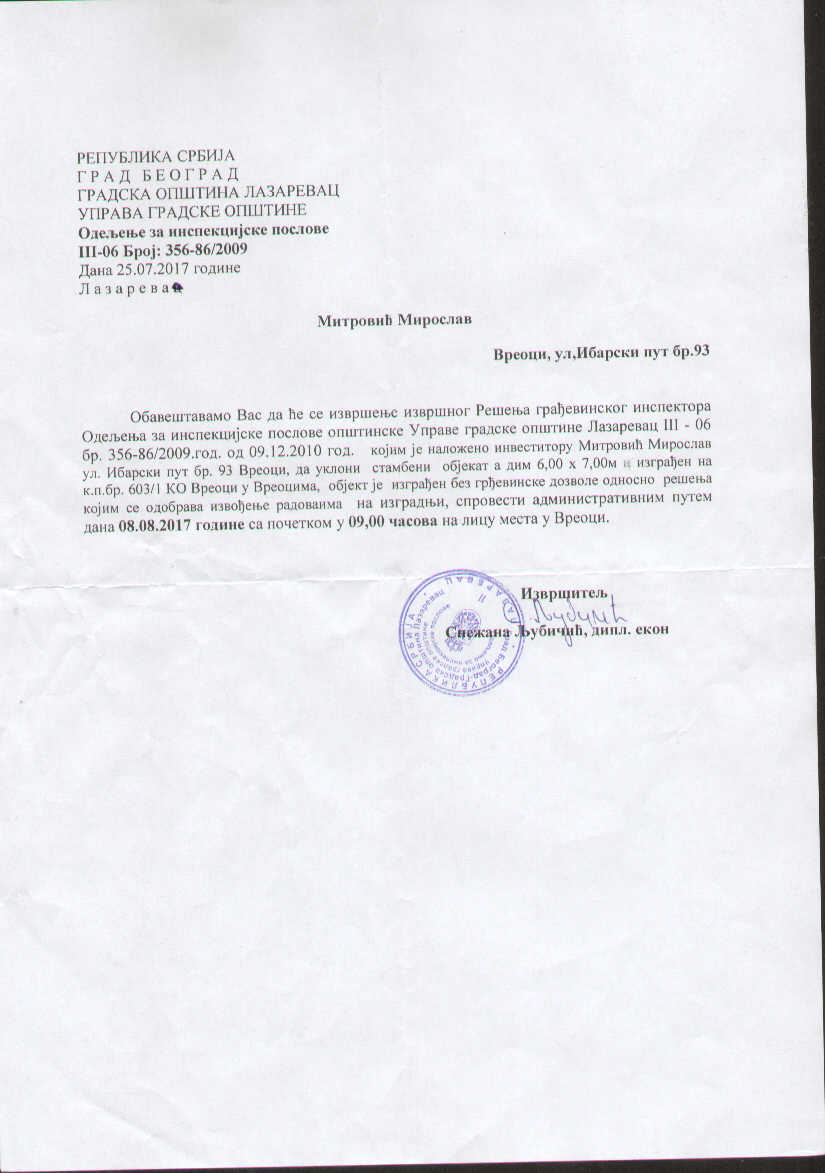 РЕШЕЊЕ О РУШЕЊУ