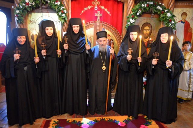 У данашњем времену, у данашњем свету, времену и свету искушења, саблазни, грехова и свакоразних злочина других, постоје и даље душе које се на глас Божији одазивају. То су и ове наше сестре које су се вечерас удостојиле да после три и више година припремања у искушеништву буду удостојене да приме свети ангелски монашки лик. То је велика милост и дар Божији и Пресвете Богородице, али и велика обавеза. Чујем какве су завете дале ове наше сестре, чули сте на шта су себе обавезале и чули сте сви шта је на крају молитве речено – да ће Господ када дође да суди узвратити, не по ономе шта смо обећали, него по ономе шта смо од обећаног извршили одржали, ово што су сестре обећале није нимало лако, није лако за човека, није лако за човекову природу, није лако само за човека. Тога су свесне и ове наше сестре и зато су на свако питање одговарале са смирењем. Не онако као што би у свету говарали да, хоћу, могу и тако даље, него: “Да али са Божјом помоћи“, јер без Божије помоћи, знају, да ништа не можемо добра учинити. Зато се ми вечерас молимо Богу да Господ њих укрепи на овоме путу којим су кренуле, путу ка Царству небескоме, ка Животу вечноме.“