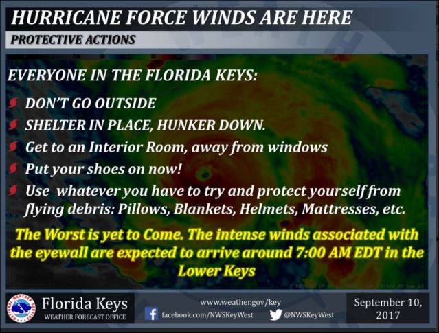 Како су метеоролози прогнозорали, ураган Ирма ће у зору погодити јужну обалу Флориде.