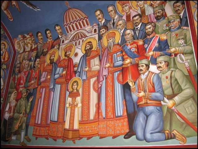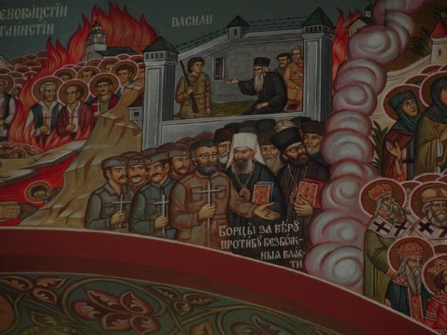 „Борци за вѣру против безбожне власти“ – фрагмент фреске „Небеска Србија“ из српске православне цркве у Чикагу