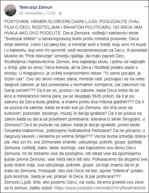 – Никад више ни просвета у Србији, ни школа „Милетић“ неће бити као што је била. Не може нико поред вас да ради оно шта хоће.