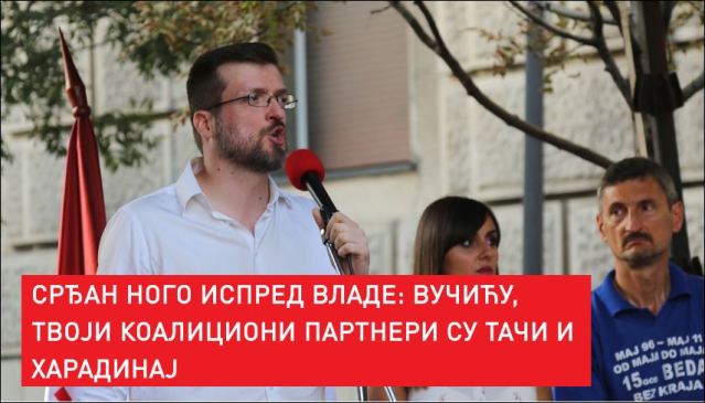 17 година континуитета једне криминалне банде и једног служења западним интересима, а сада је на челу Александар Вучић. Починио си велику издају, поред тога што си криминалац. Покушао си да слажеш грађане Србије преко својих лажних медија, да имаш подршку Русије. Не може да ти се опрости то што си са терористом правио власт. Твоји коалициони партнери су Тачи и Харадинај. За то ћеш одговарати и за криминал ћеш одговарати. Уколико медијска сцена Србије не буде промењена.