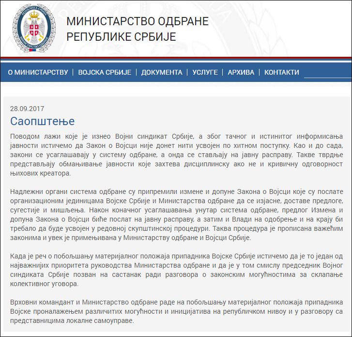 Published at 727 × 695 in ВОЈНИ СИНДИКАТ: ДЕМАНТИ ОБЈАВЕ МИНИСТАРСТВА ОДБРАНЕ и ОТВОРЕНО ПИСМО директору РТС – „БИО ЈЕДНОМ ЈЕДАН БУЈКЕ…“