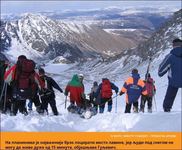 — Пошто је реч о малим градовима и селима у том крају, није било ванредних ситуацијама у којима је угрожено пуно људи одједном. Али се често дешава да се људи загубе у тим планинама, посебно алпинисти и сноубордери. Потребно је организовати потрагу у јако тешким условима. То су за нас веома опасне акције, планине су неприступачне, климатски услови јако тешки, има пуно снега и леда, простора којима је изузетно тешко прићи. Посао је много ризичан. Имали смо и једну велику трагедију 1985. године када је седамнаест студената нестало. Одмах смо организовали потрагу, нажалост, то се завршило трагично. У таквим ситуацијама најважније је брзо реаговање, када се сруши зграда, људи под њом живе и по десет дана, али када човека прекрије лавина, не може да дише више од 15 минута. Тешко је наћи људе, јер је реч о великим површинама под снегом, све је бело, ако нема уређаја за тражење, шансе су мале.