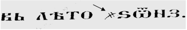 Испод можете да видите датирање Душановог законика у старој српској престоници Скопљу у лето 6857. са српским (винчанским) симболом за време (по католичком календару папе Гргура Тринаестог, који у то време није ни постојао, 1349. године).