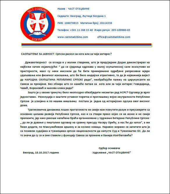 Удружење „ЧАСТ ОТАЏБИНЕ“