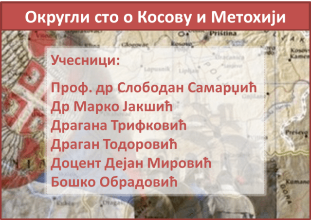 Округли сто о Косову и Метохији – 30. октобар 2017. године од 10 до 12 часова. По завршетку округлог стола о Косову и Метохији, у 12:15 одржаће се конференција за новинаре.