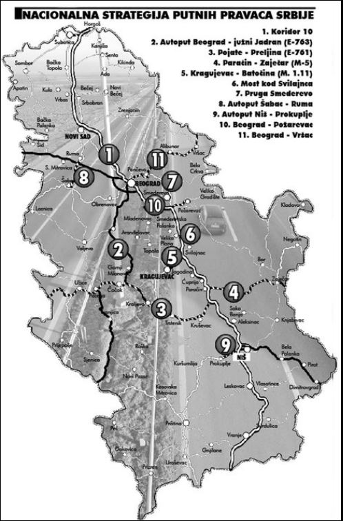 На почетку ове деценије (2010. године), дневна штампа је била препуна информација о томе шта је од путева у Србији довршено а шта не. Тада још увек водећи стратег српске путоградње, Милутин Мркоњић, лагао је бестидно српску јавност исто као што је и данас лажу. У то време, на сцену је поново ступило питање једне мале али стратешки веома важне деонице пута на релацији Крагујевац-Баточина. Реч је, дакле, о изласку града Крагујевца на ауто пут. Удаљеност између ова два места је тачно 22 километра и 400 метара (ваздушне линије, тачно 19 километара). Невероватно је али истинито: српски режими већ четврт века не могу, неће, не желе или не знају да заврше овај пут. Дакле, пре седам година, трајало је жестоко препуцавања надлежних грађевинских институција и државних органа око тога ко је одговоран за привремено пуштање у саобраћај опасне деонице аутопута од Баточине до Крагујевца без иједне дозволе, па се испоставило да нико не зна ко треба да га затвори (јер није довршен!). Седам година касније, првих дана јесени ове године, министарка Зорана Михајловић поново „отвара део пута“ Крагујевац-Баточина. Два дана касније у Дневнику РТС-а, изјавила је да њено министарство већ дуже време разговара са америчком компанијом „Бехтел“ о изградњи Шумадијског коридора („…Ми са наше стране покушавамо да препројектујемо пројекте који су постојали…Напомињем да је завршен већи део ауто-пута Баточина-Крагујевац, који ће бити отворен следеће недеље…Укупна дужина је 27 километара, ми смо завршили 22 километра и остаје још пет кроз Баточину. До марта очекујем изградњу и тих пет километара. Овај пројекат се вуче годинама, ми смо пројекат преузели прошле године и следеће недеље ћемо пустити завршен део…“)