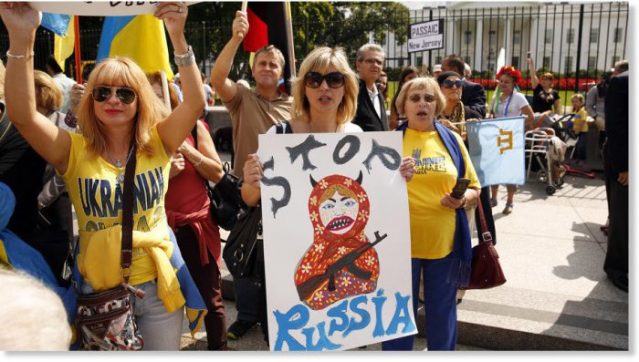Срби, бар када је реч о истоку Европе, нису једини предмет западне мржње. Ту су, наравно, и Руси. Као што је лепо приметила једна Американка српског порекла, гледајући тамошњу ТВ, „непријатељи западног света су већ 30 година стабилни и непромењени: Србија и Русија. Грозни православни Срби који су, у терору, преклали огроман број мирних демократских муслимана и не мање страшни руски комунисти који су уништили узгој демократије и слободе у Чеченији“ (овде).