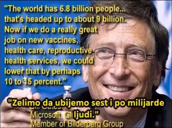 1. Тај „пројекат“ увелико траје. Свјетски познати генетичар Арпад Пустај (мислим да сам добро запамтио име и презиме) одавно тврди да се у Јужној Америци помоћу ГМО производа , првенствено кукуруза и соје , изазива неплодност. Један од начина је „убацивање“ спермицида у ове производе. Жалосно је што би се ово могло назвати и : „самоубиство са предумишљајем“. Јер , како другачије гледати на чињеницу да огромна већина користи „Прозоре“ Гејтсове компаније које плаћа , па тако финансира његове сулуде пројекте , а са друге стране имамо потпуно бесплатне оперативне системе „Линукс“ , „Убунту“ , итд.!