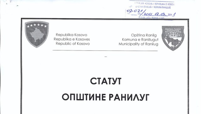 Да такозвана „република Косово“ има надлежност над квази-општином Ранилуг, потврђује и документ, Статут те „општине“.