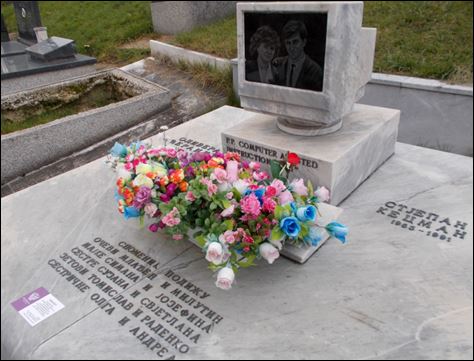 На овој слици необична споменика сам и лично био на сахрани двоје младих који су пред само вјенчање погинули у аутомобилу. Невиђена трагедија. И њихов споменик је предвиђен у случају даљњег неплаћања да буде ресетован (да се изразим ријечником блиском покојницима). Како су били активни чланови клуба „Стелекс“ (СТуденти ЕЛЕКтротехничког факултета Сарајево), ово удружење би могло да плати ради сјећања на своје чланове трошкове „Покоп“-у, или да бар организују прикупљање средстава од многих по свијету разасутих електро-инжењера бивших чланова Стелекса.
