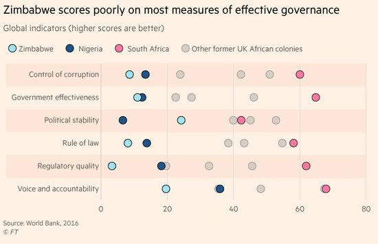 Према овој инфографици Фајненшел тајмса, Зимбабве лоше стоји по свим кључним параметрима којима се карактерише ефикасна влада (Фото: Фајненшел тајмс)