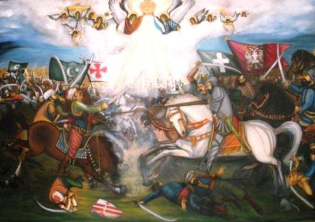 Но то није завршна порука коју одашиље Косовски културолошки мит: слика напуштања овоземаљског трајања је уклопљена у раван хришћанских веровања, која су истовремено главни покретач страдања и суштинска сврсисходност чина жртвовања Лазаревих витезова. Религиозно-хришћанска димензија интерпретације историјско-епског догађаја усмерава колективну свест на нова духовна упоришта: кнез и његови витезови, иако мртви, освајају небеско царство, идеални културни пејзаж, место на коме су Срби победници у вечности, место са којег света земља, Косово, представља синоним неотуђивог, трајног поседовања. Из те имагинарне трајности, из осећања нераскидиве повезаности с колективним заветом, из оданости према Лазару и Косову, самосталности, слободи, држави, из оданости према националном усуду, ствара се и нова порука која Косовски мит претвара у историјско-национални програм: све што се родило после Косова рађа се за његову одбрану, део је непрекидне Лазареве војске која пролази кроз векове, губи и осваја битке, и тако без прекида, на једном и истом месту, на месту њихових отаца и предака – на културном пејзажу симболично названим Косово. Јер Косово поље, надомак Приштине, између Ситнице и Лаба, надмашује своју географску стварност и израста у метафизички пејзаж на коме почива судбина читаве нације. Позив на борбу за слободу и одбрану места где је поникла његова државност – места које га суштински дефинише, места културног пејзажа – народ претвара у метафизичку наду у ослобођење од зла и земаљске патње, наду у освајање суштинске, небеске слободе и правде, оне у којој бораве Лазареви витезови.“