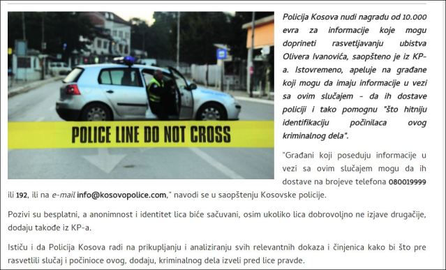 Нови свјетски поредак уредно најави да се нешто спрема, па тако шест дана прије убиства Оливера Ивановића упозорава своје грађане да не путују у Сјеверну Митровицу, Лепосавић, Зубин Поток и Звечан.