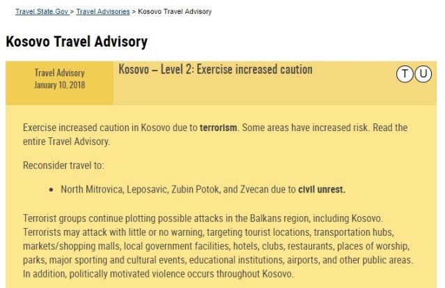 10. јануар: Стејт департмент упозорава на ризик од „тероризма“ и „политички мотивисаног насиља“ на Косову, поготово у Косовској Митровици. 16. јануар: Оливер Ивановић је убијен у Косовској Митровици.