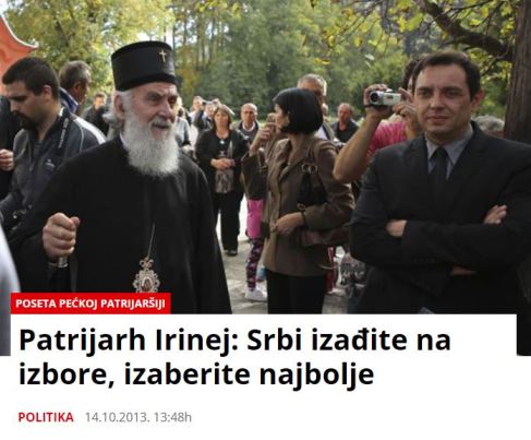 Напротив, патријарх господин Иринеј изјављује да се Вучић “лавовски бори за нашу земљу и да благодаримо Господу на Вучићу” и види га као “човека кога нам је подарио Господ за српски народ, а посебно за мучeничко и страдално Косово и Метохију”!!!!????