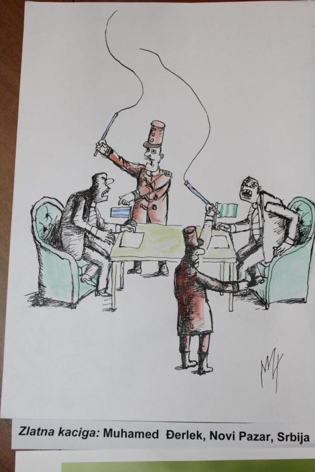 Златна кацига припала је карикатури „Преговори“ чији је аутор Мухамед Ђерлек, карикатуриста из Новог Пазара.