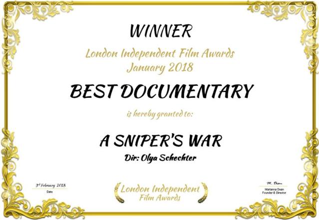 Ипак, америчка публика и жири тешко ће прогутати оно што је филмом испричала Олга Шехтер. Јер, она је искрено и без улепшавања пренела животне и антиамеричке политичке ставова Дејана Берића, чија би глава за украјинске снајперисте била најдрагоценији плен и донела им награду од 50.000 долара.