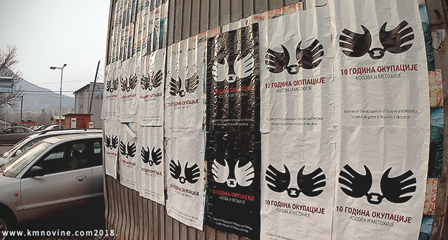 Плакати са поруком „10 година окупације“, поред српског још и на енглеском и албанском језику, осванули су на више места у Косовској Митровици и Звечану.