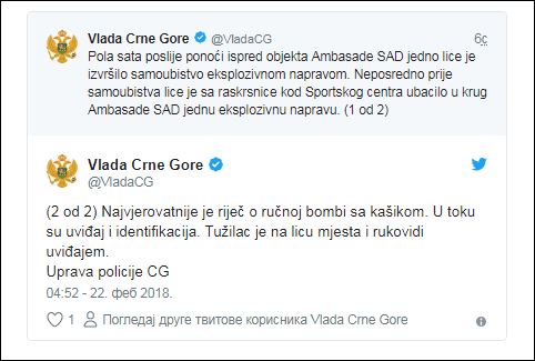 Published at 482 × 325 in ЦРНА ГОРА: На амбасаду САД у Подгорици бацио бомбу „па се убио“, зграда амбасаде неоштећена и нема повређених