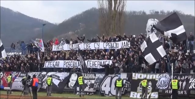 На трибинама су развили транспаренте на којима је писало: „ТВОЈЕ ГОДИНЕ СЦЕ СУ СРБИЈИ ДАЛЕ, СРЕЋАН РОЂЕНДАН ГЕНЕРАЛЕ!“.