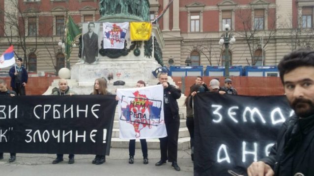 18.21 Учесници протестне шетње крећући се београдским улицама од Председништва Србије до Владе Србије узвикују: „Не дамо вам Косово“, „Русија и Србија никад Унија“, Нато Дахије марш из Србије“, „Вучићу педеру издао си Косово“, „Косово је срце Србије“ и остале пароле у којима се исказује јасан став против бриселских преговора против албанских окупатора на Косову, за опстанак Косова у саставу Србије, за што ближе односе са Србијом а непријатељство према НАТО савезу. А како је изгледало паљење поменутих застава погледајте у видео-снимку:
