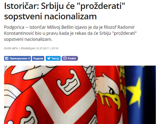 У том смислу, није случајно настојање овдашње аутоколонијалне „елите“ по медијима, али и по универзитетима, да национализам сведе само на „десницу“ у Србији, коју ће, онда, у даљем поступку редукције, најпре да изједначи са „екстремном десницом“, а на крају и са „фашизмом“.