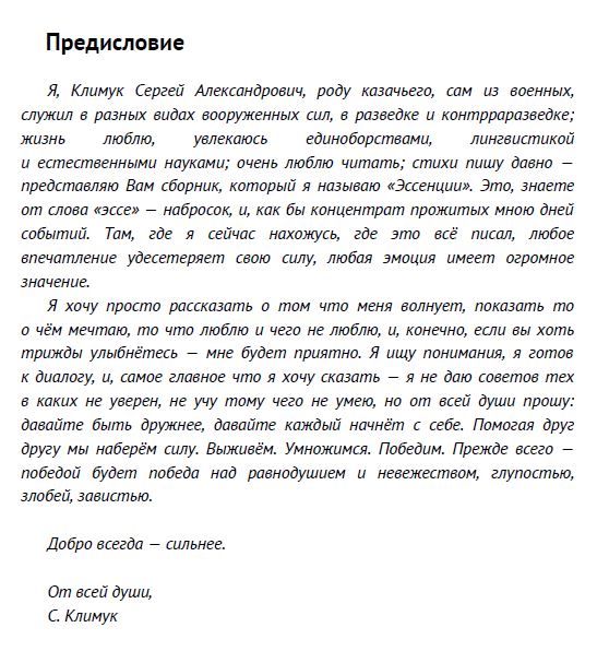 Выдержки из вводной части книги Эссенции автора Сергея Климука: