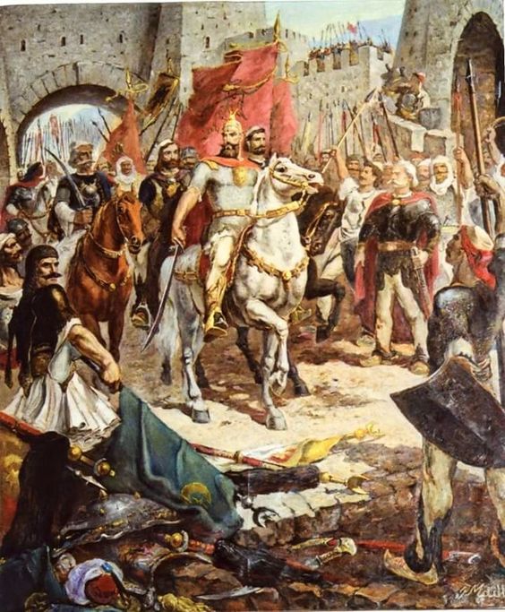Скендер-бег послије побједе над Турцима улази у слободни град.