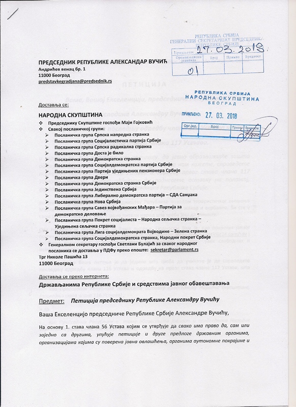 Предмет: Петиција председнику Републике Александру Вучићу