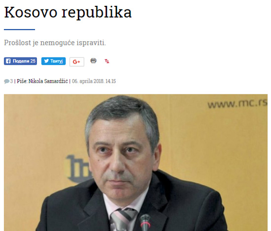 И ево како у дневнику Данас (зa који зли језици кажу да је „углавном болно досадан и испразан”) колумнистичке ведете крећу да објављују чланке о Косову. А њихови наслови су својствени: Алексеј Кишјухас: „Обијање Косова о главу”; Никола Самарџић: „Косово република”; Гордана Суша: „Затрпавање Косовом”; Милојко Пантић: „Света српска земља тражи нове жртве” итд. А у интервјуу овом листу, Милан Ст. Протић нам поручује: „Kосово је за Србију изгубљено… Ми смо Kосово вратили 1912. године, изгубили смо га 1999”.