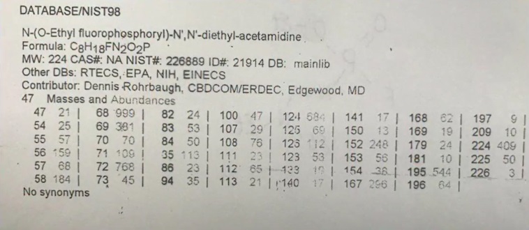 У прилог овој верзији рекају су докази од руске стране, која је изјавила да 1998. године у базу спектралне библиотеке хемијских једињења националног института за стандарде и технологију.