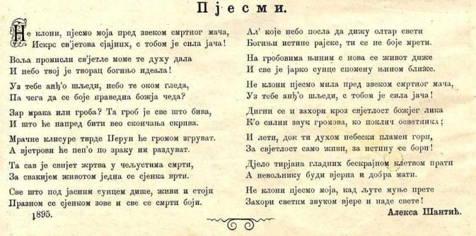 Оно што понеко памти јесте то да је Алекса Шантић писац текста који је 1904. године побједио на пјесничком натјечају за Српску народну химну. Текст није усвојен наводно због нејасноће. Прије ће бити због опасне јасноће.