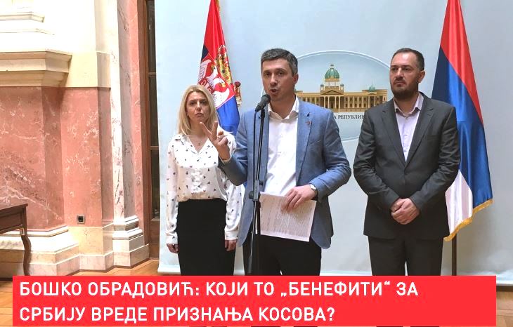 „Чак и да ставимо на страну историјски и културни значај, на Космету још увек живи велики број Срба па нека председник и премијерка прво њих питају шта мисле о овој „трампи“ коју власт планира. Друго, вредност природних и рудних богатстава, као и имовине државе Србије, СПЦ, и приватне имовине Срба се мери милијардама евра. Наша власт се планира трајно одрећи те вредности зарад „бенефита за Србију“ који се претпостављам огледају у „бржем приступању ЕУ“, шта год то значило.“ – рекао је Обрадовић и додао да „наша власт говори о бенефитима које ће добити ако да Косову столицу у УН, а није била способна да са својим „западним партнерима“ испреговара чак ни заштиту права на имовину које је свугде у ЕУ светиња.“