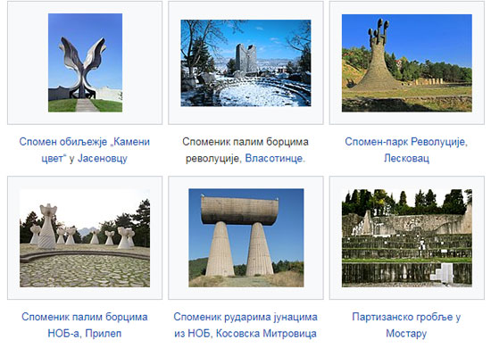 Рецимо Гаравице, где су усташе поклале преко 12.000 Срба из Бихаћа и околине. „Спомен подручје је обиљежено скулптурама Богдана Богдановића које не показују ко су биле жртве, вријеме кад су страдале, број жртава ни ко су били џелати” (овде). И данас у Википедији на енглеском, у одредници о Богдановићу, за споменик у Гаравицама стоји: „dedicated to the 12,000 civil Nazi victims” (овде; на споменику на Маркалама, наравно, стоји: „Na ovom su mjestu srpski zločinci 5. 2. 1994. ubili 67 građana Sarajeva”; а на споменику у Тузли пише: „Na ovom mjestu 25. maja 1995. godine srpski fašistički agresor je granatom prekinuo 71 mladi život“; овде и овде).