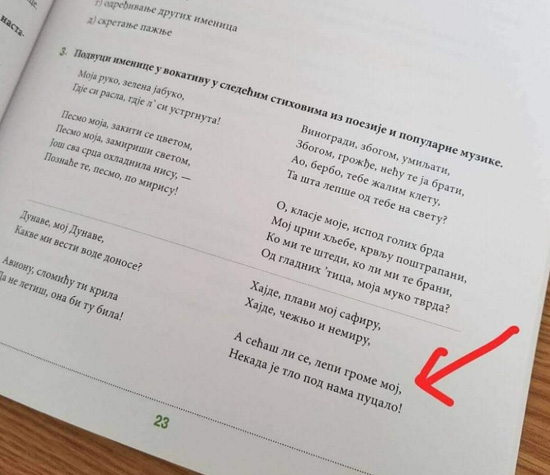 Неважно је што је, у овом случају, реч тек о примеру за вокатив. Неважно је и то што већина у Србији слуша ту врсту музике. Наш свет очигледно не жели да тако нешто деци у школама буде било какав вид узора.